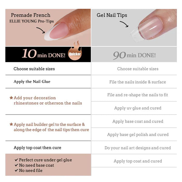 What is ProTips ?• Three-layer Innovative Technology, simplify your manicure steps (Primer +Soft Gel + Matte Coat),It can be used as a DIY option• Translucent natural color design, can be used with gel x, glue, jelly stickers• Scientific thickness design, no pressure pain and not easy to break. Total 15 sizes always could fit your nail bed.• Viral Manicures, Beyond Salon