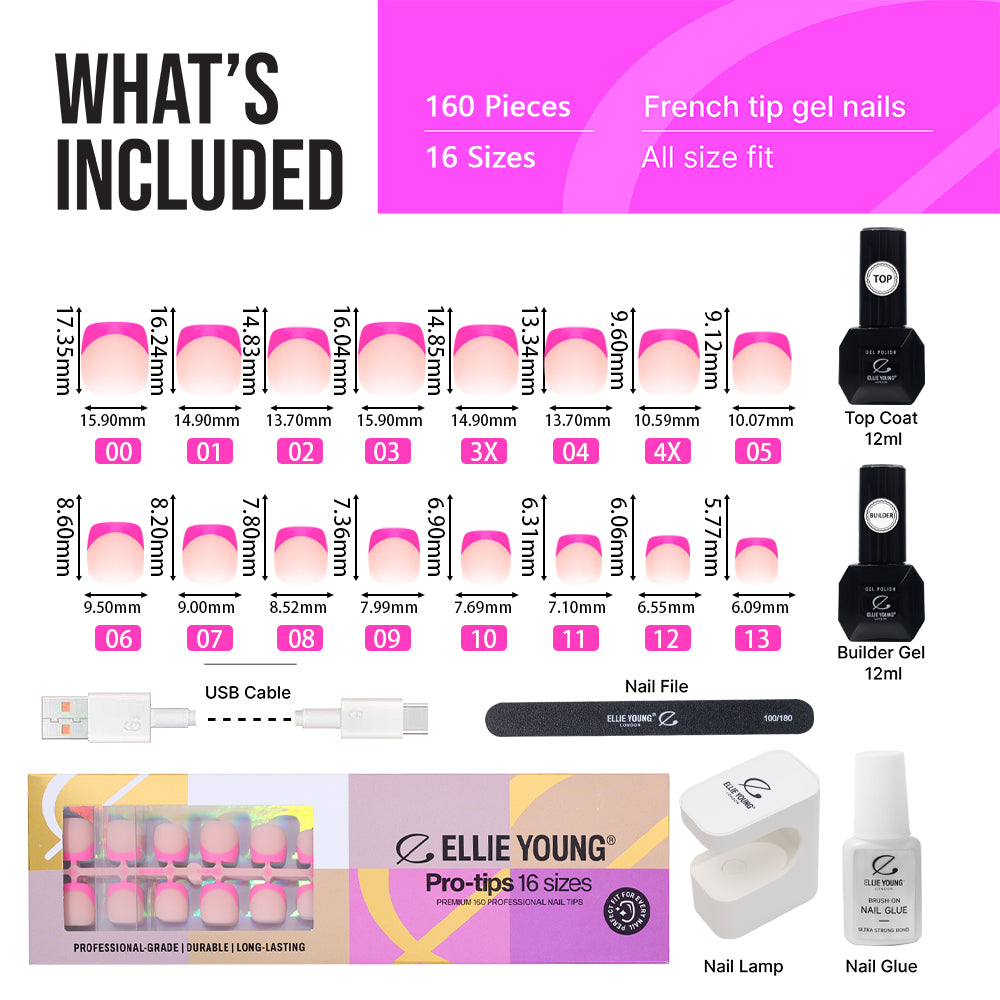 Scientific thickness design, no pressure pain and not easy to break. Total 15 sizes always could fit your nail bed.